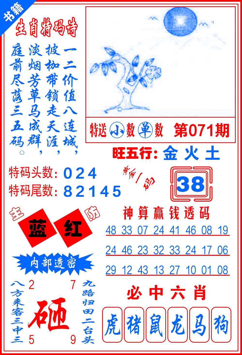 071期: 澳门六合皇彩圖信封【蓝财神报】每期自动更新