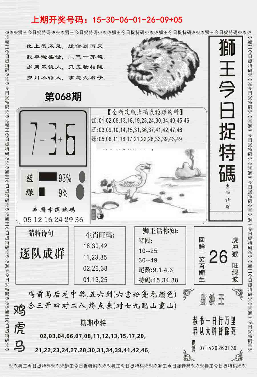 068期: 澳门六合皇彩圖信封【狮王平特】每期自动更新