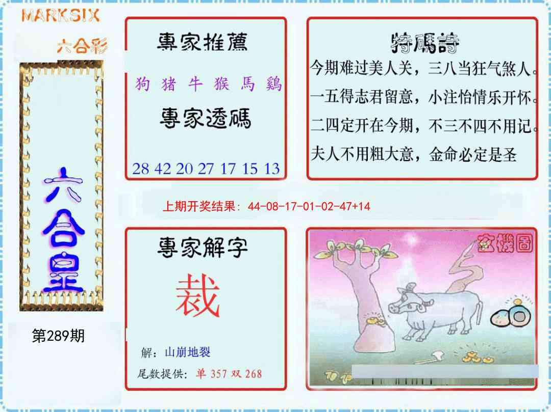 289期: 澳门六合皇-绝杀两肖-长期免费